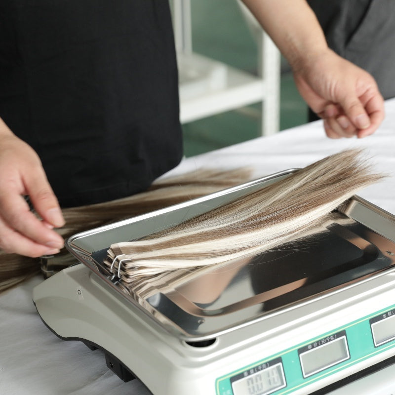 Our strict QC system is implemented throughout every process of production, ensuring the comprehensive protection of hair quality, consistent color accuracy, and impeccable craftsmanship. Additionally, we conduct three rounds of batch inspections, meticulously scrutinizing raw hair materials, the coloring phase, and finished products. This guarantees each piece of extensions meets the standards of quality.