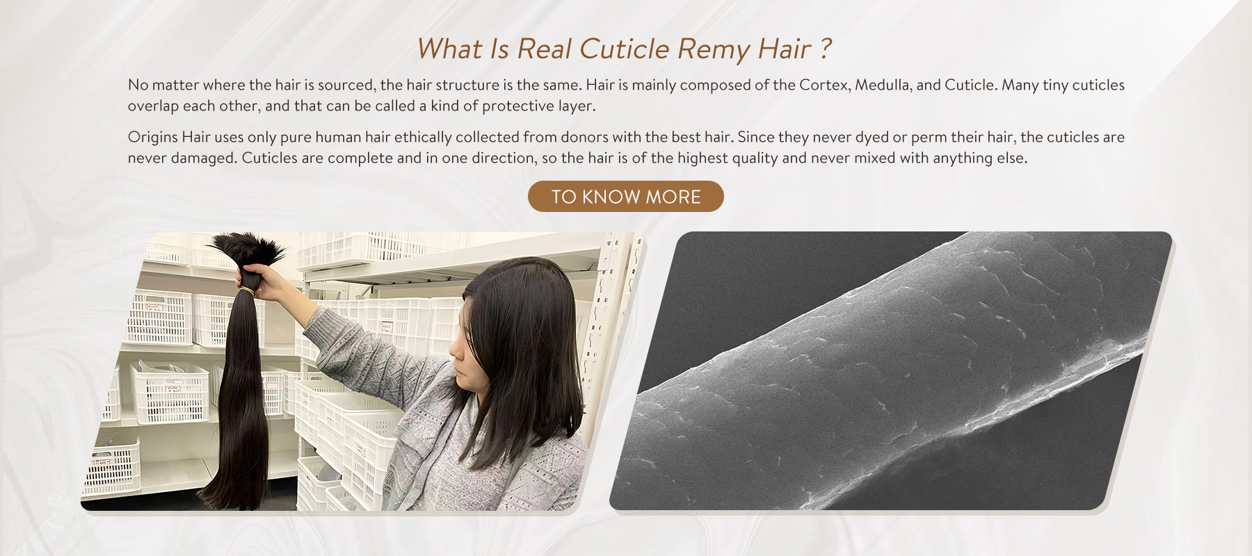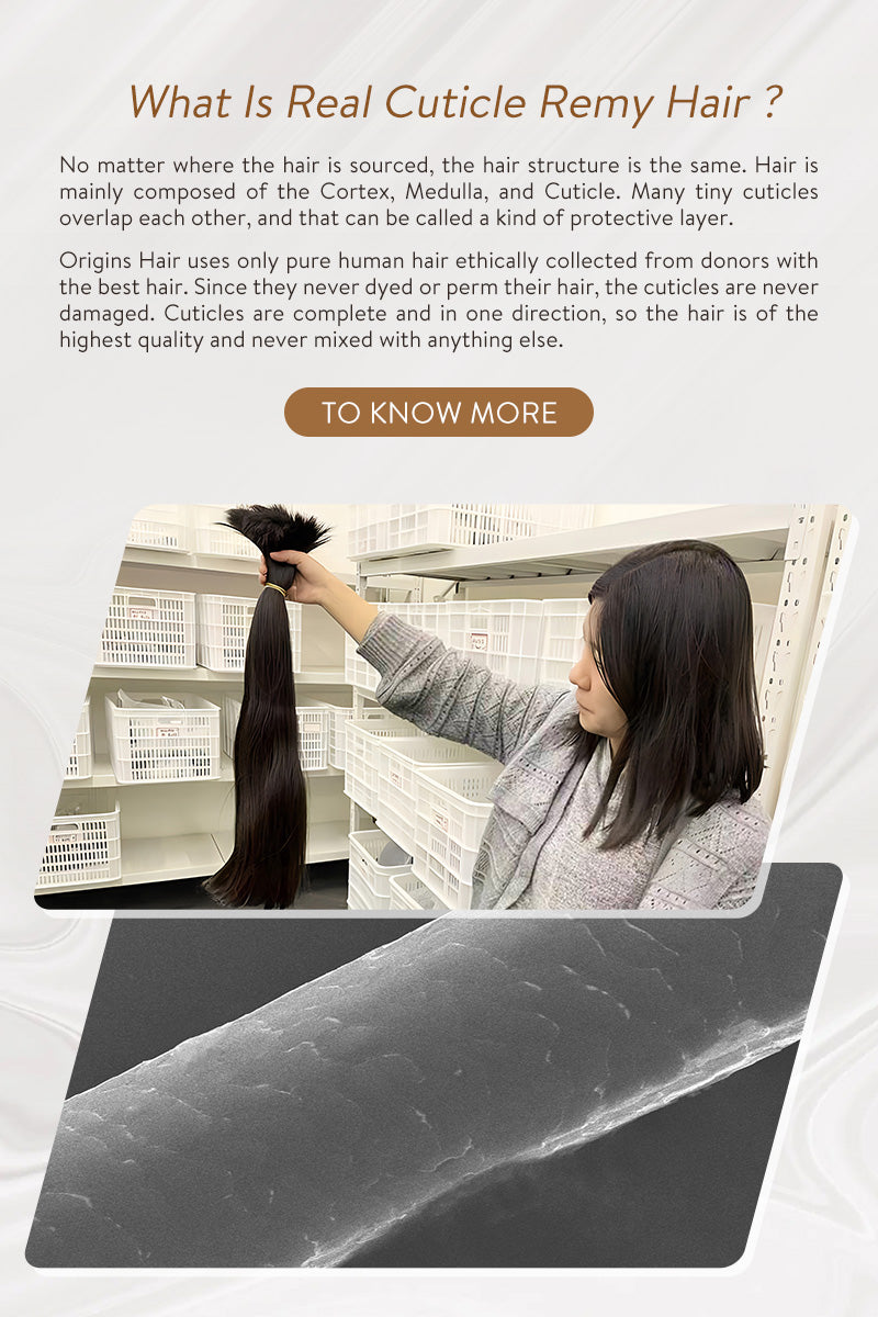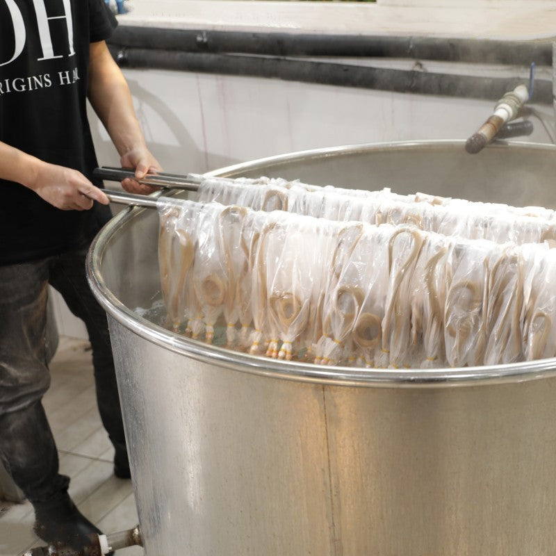We exclusively source the highest quality raw hair, meticulously gathered from individual donors' braids, ensuring that all cuticles remain intact and aligned in the same direction. The hair strands keep exceptional thickness and strength, making them the optimal choice for upscale salon professional extensions. With proper care, the hair can exhibit a lifespan of 12 months or even longer.