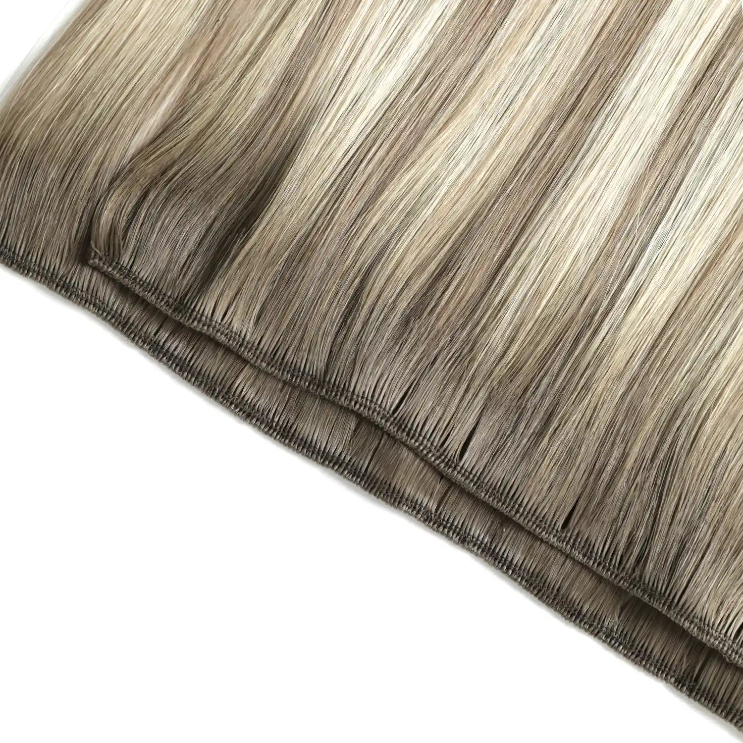 Hand-Tied Wefts ( with return hair) are hand-sewn for an ultra-refined, seamless finish—ideal for fine hair and custom color work, since the shade can be carried all the way to the top of the weft. They require precise placement and should not be cut.